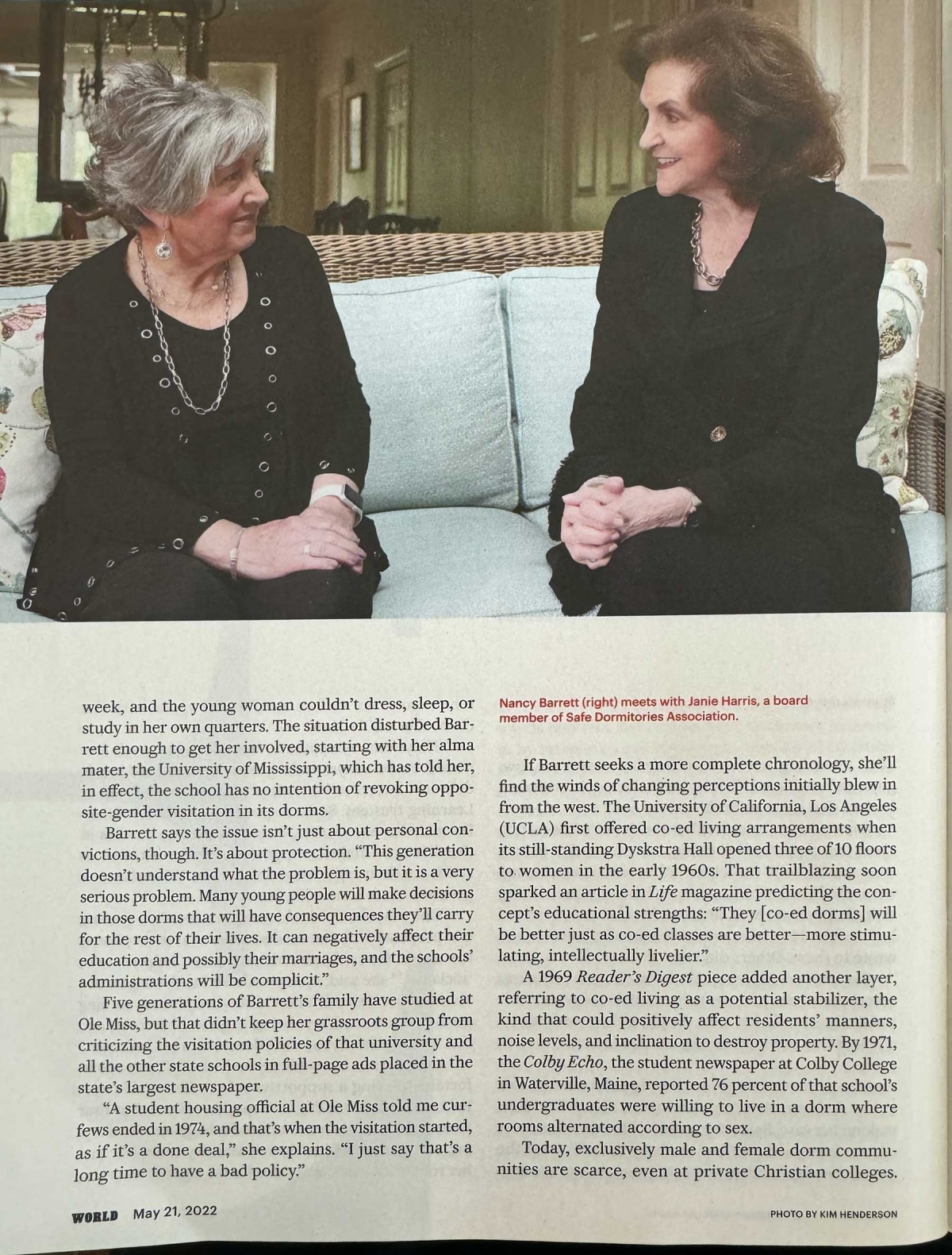 Read the full World magazine article written by Kim Henderson titled "Open Dorms, The status quo in higher-ed housing represents an extraordinary shift in thinking" on the link provided below.